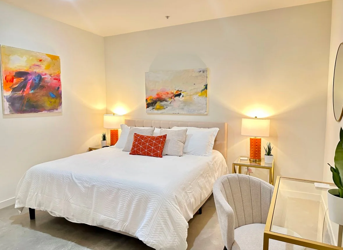 Fully furnished 2 bedroom / 2 bathroom Santa Monica monthly rental. King beds, TVs in every room, fully stocked kitchen and bathrooms, parking included, and optional housekeeping.